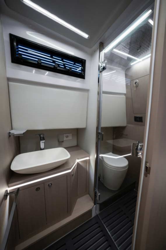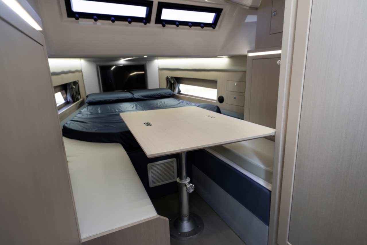 Sa coque step vous assure un excellent passage en mer, vous avez le choix de l’équiper d’une motorisation allant jusqu’à 1450CV .