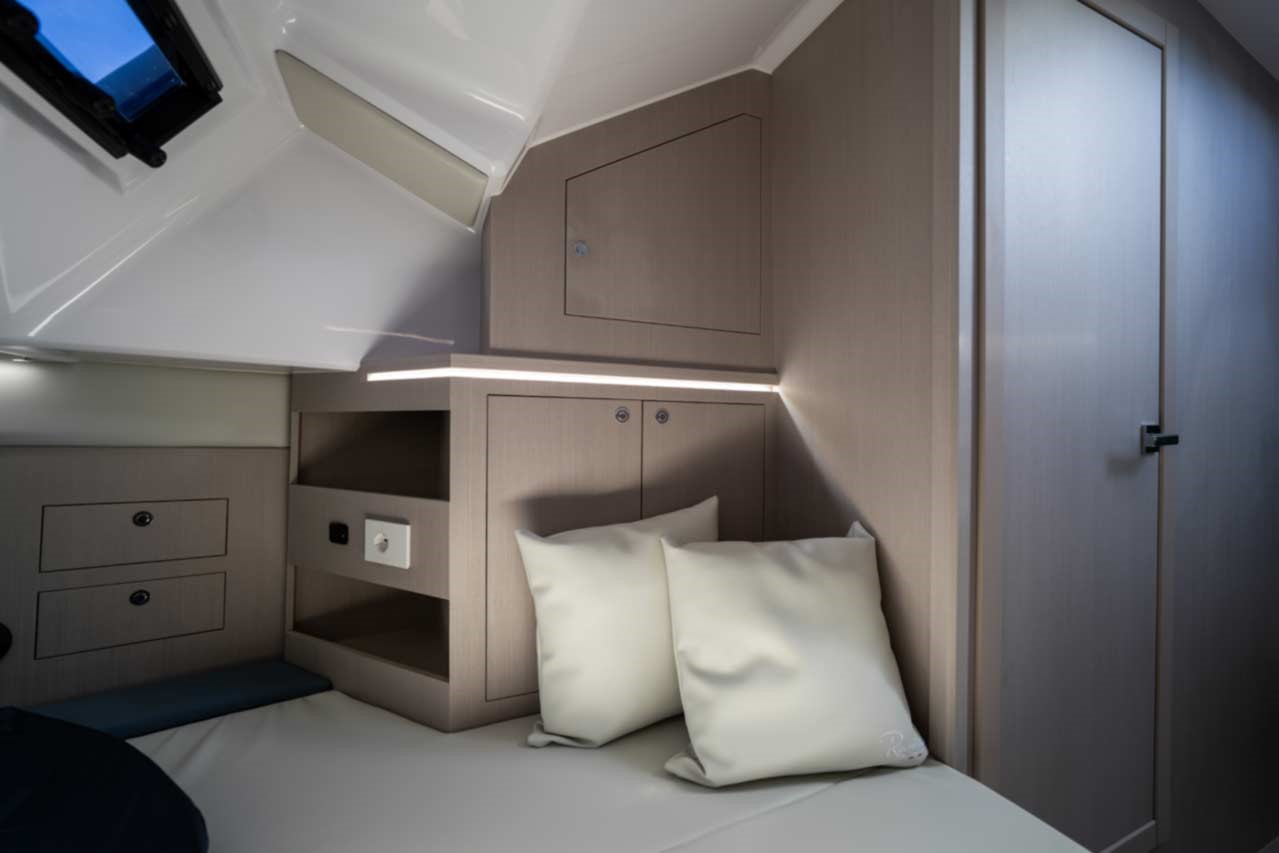 Le RANIERI NEXT 50 à une cabine 4 couchages, longueur de 14m40 et largeur de 4m30, vous pouvez embarquer jusqu’à 16 personnes,.